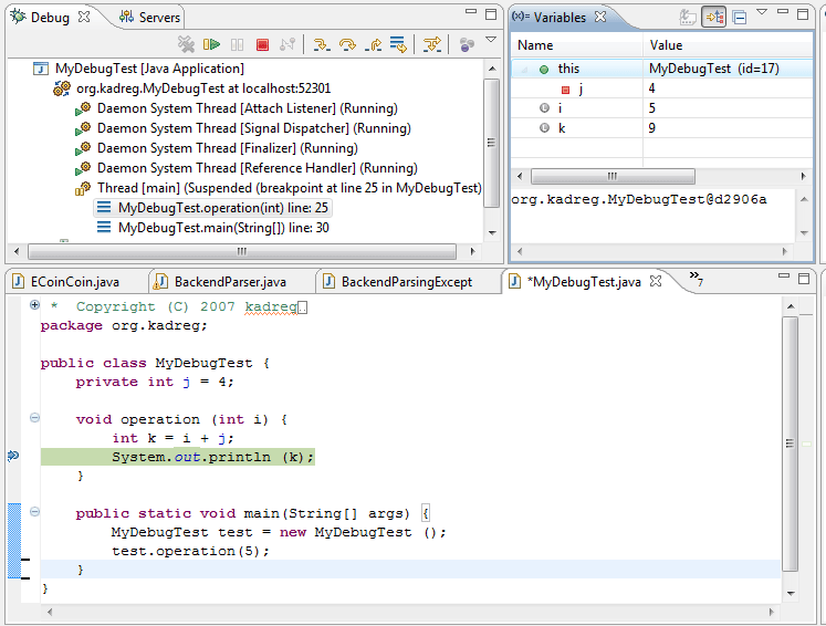Debugging activities typically depend on external debugger that is attached to the running process. Using such approach you have detailed insight into running system with all important state exposed. However such approach is not always possible (checking production deployment for example.