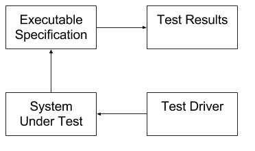 And now quite crazy idea has come to my mind: What if we forget about changing state and focus only on state validation? Executable Specification 2Then the executable specification won't be responsible for "test driver" job. Only state validation would be needed (including some temporal logic to express time constraints). That is much easier task to accomplish.
