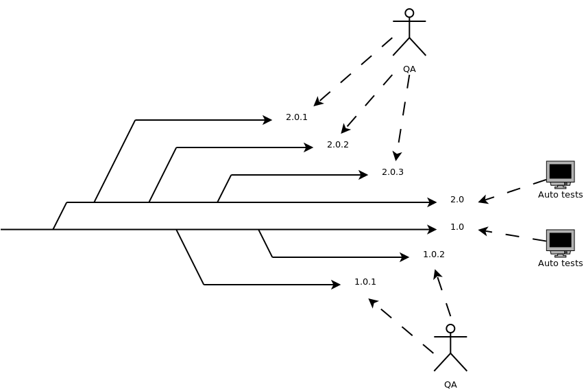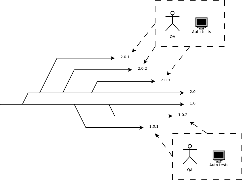 We tracked every release branch (assuming it's the most important point for quality measurements). The situation was like on diagram below.