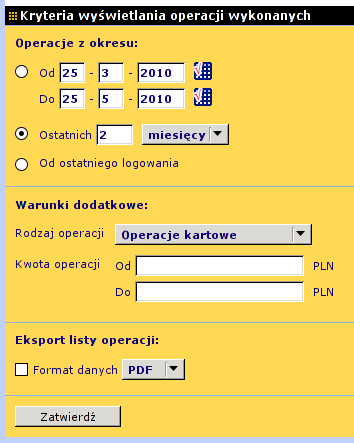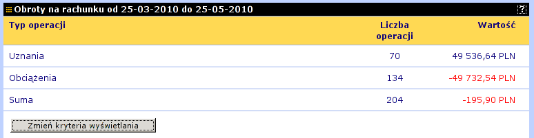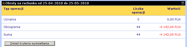 - lista operacji na koncie nie mieści się na jednej stronie wyników i aktywuje się stronicowanie wyników