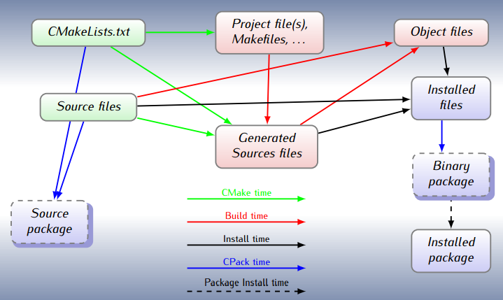 Interesting function (also visible in QMake) is the ability to detect changes in CMake project files and autoatically rebuild Makefiles. After 1st CMake run you don't need to run it again, just use standard make interface.