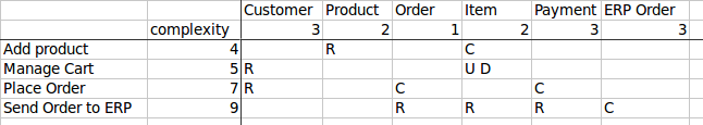 So we know now that more complicated process will be sending order to an ERP system. If we added proper weights to operations (CRUD) and measure single activity we could estimate full effort needed to implement specified system.